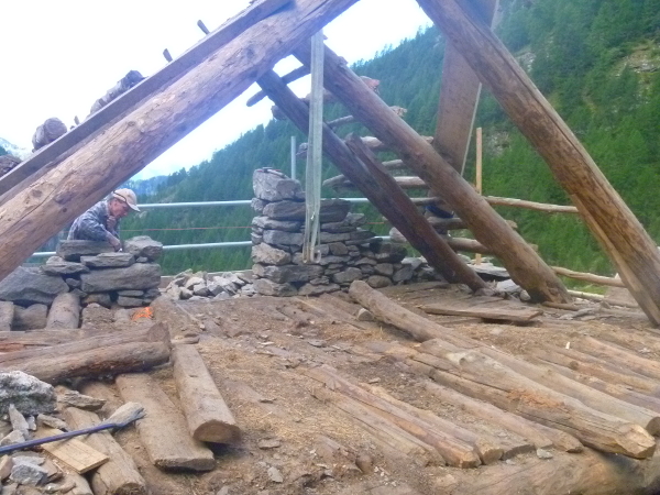 Al termine di questo week end il muro posteriore ed il frontone anteriore erano ricostruiti.